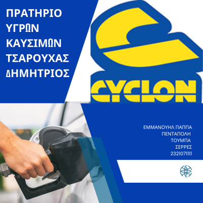 ΠΡΑΤΗΡΙΟ ΥΓΡΩΝ ΚΑΥΣΙΜΩΝ ΒΕΝΖΙΝΑΔΙΚΟ CYCLON ΤΟΥΜΠΑ ΠΕΝΤΑΠΟΛΗ ΣΕΡΡΕΣ ΤΣΑΡΟΥΧΑΣ ΔΗΜΗΤΡΙΟΣ