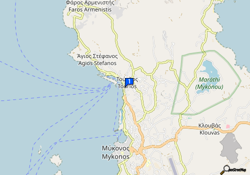 Το νέο λιμάνι του Τρούλου βρίσκεται σε απόσταση 500μ. Η γραφική πόλη της Μυκόνου απέχει λιγότερο από 2χλμ. Ένα λεωφορείο απέχει 30μ. Από το ξενοδοχείο. Το προσωπικό μπορεί να κανονίσει ενοικίαση αυτοκινήτου.